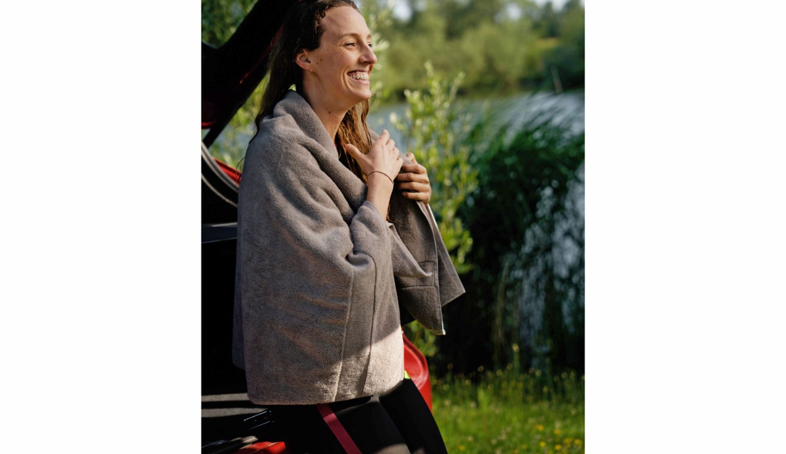Platz hat die 1,84 Meter große Athletin im Cayenne mehr als genug, zum Panoramadach über ihrem Kopf ist noch reichlich Spielraum. Durch das Glas scheint die Sonne ins Auto. Leonie freut sich über das gute Wetter, denn sie wird heute in einem nahegelegenen Seitenarm des Mains trainieren.
