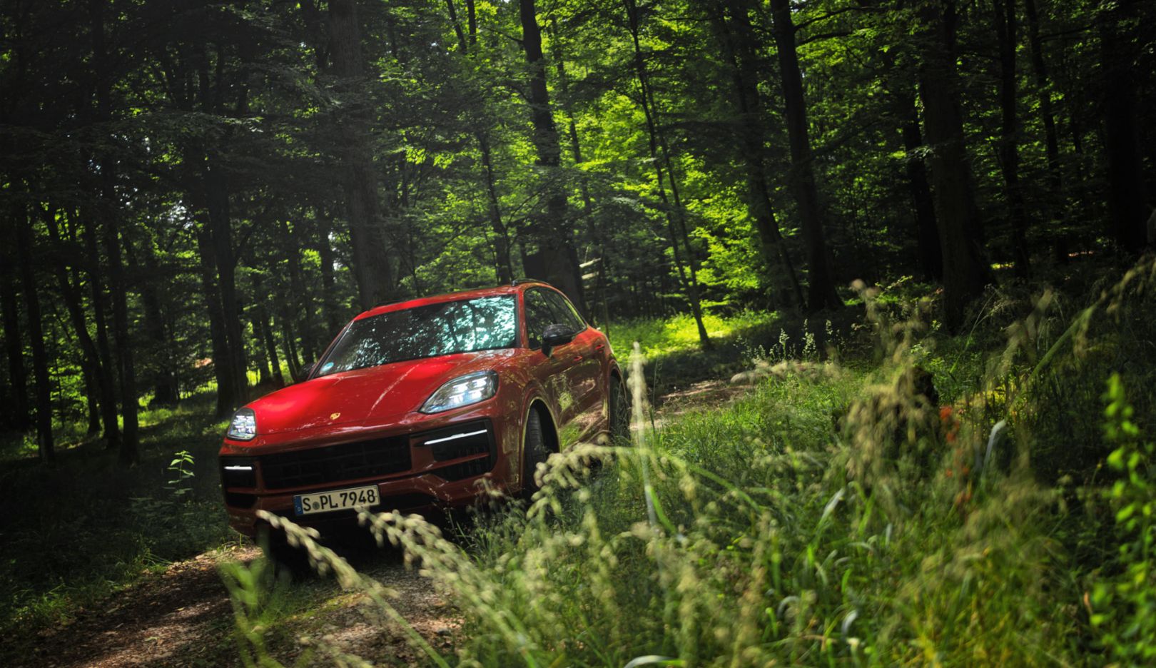 Seit einiger Zeit fahren wir auf der Landstraße, vorbei an Feldern, durch Weinberge, zum Fluss hinunter. Leonie biegt in einen kaum als solchen erkennbaren Feldweg ab. Das Navi sagt „Aktuelle Position: Offroad“. Ab hier wird der Weg ungemütlich. Eigentlich. Doch wir sind im Cayenne GTS unterwegs – Schlaglöcher, Steinbrocken, Unebenheiten stecken die adaptiven Dämpfer des serienmäßigen Porsche Active Suspension Management (PASM) locker weg. Die optionale Porsche Dynamic Chassis Control Sport (PDCC Sport) verhindert Wankbewegungen und erhöht die Stabilität.