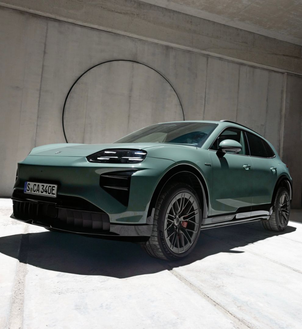 Zugkräftig: Das vollelektrische Cayenne-Angebot umfasst zunächst zwei Modelle: den Cayenne Electric, hier in Vanadiumgraumetallic, und den Cayenne Turbo Electric, hier in Mysticgreen – beide mit Allradantrieb und einer ausstattungsabhängigen Anhängelast von bis zu 3,5 Tonnen. Ein im BEV-Segment außergewöhnlicher Wert. Das E-SUV wird das bestehende Angebot aus Verbrenner- und Hybridmodellen ergänzen.
