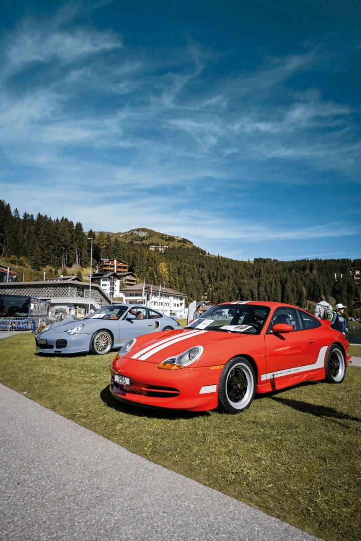 Mitten im Getümmel, auf dem Postplatz von Arosa, stechen drei weitere Porsche-Highlights ins Auge: kreative Restomods auf Basis der 911-Baureihe 996, die von Schweizer Porsche Zentren im Rahmen des „Legends Alive Contest“ mithilfe von klassischen Komponenten und Tequipment-Teilen erschaffen wurden. Welcher Restomod am meisten überzeugt – der blaue 996 Turbo des Porsche Zentrums Zug, der „Pepita Red One“ des Porsche Zentrums Zürich oder „Sally’s Boyfriend“ in Anspielung auf die Trickfilmreihe „Cars“ des Porsche Zentrums Basel –, bestimmt neben einer Fachjury auch das Publikum via QR-Code. Jubeln kann am Schluss das Porsche Zentrum Zürich. Mit nur einem Punkt Vorsprung sicherten sich die Zürcher den Sieg beim diesjährigen „Legends Alive Contest“.