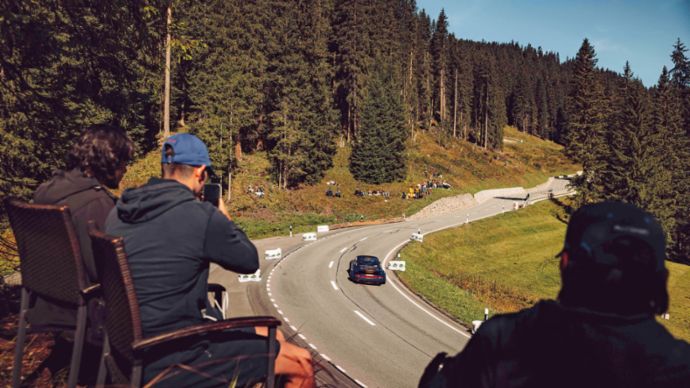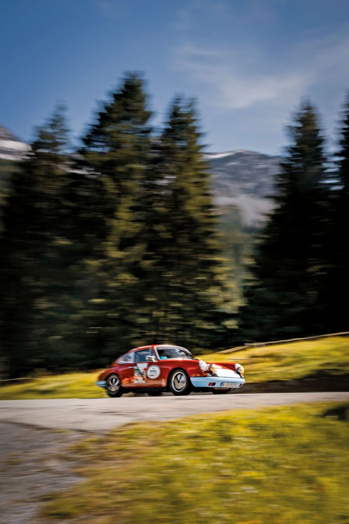 Und Porsche? War stets mittendrin. Kaum ein anderer Hersteller ist so eng mit dem Bergrennsport verbunden. Zwischen 1958 und 1968 sicherte sich Porsche während seiner Werkseinsätze nicht weniger als neun Europameistertitel in der Berg-EM – Erfolge, die an der Agilität und Zuverlässigkeit von Modellen wie dem 718 RS 60, 906, 910 und explizit für den Bergrennsport konzipierten 909 Bergspyder keine Zweifel liessen. Mit dem 911 ging es ab 1966 eindrucksvoll weiter: Schon sein erster Einsatz mit Eberhard Mahle beim Bergrennen Rossfeld endete mit einem Klassensieg – eine Überraschung, da niemand mit dem Sieg eines Serienfahrzeugs gerechnet hatte – und markierte den Beginn einer beispiellosen Erfolgsserie: Bis 1982 sammelten der Elfer und seine Derivate insgesamt 15 EM-Bergchampionate.