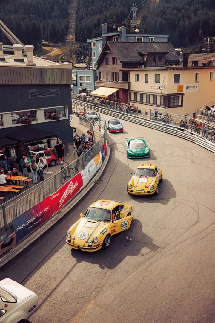 Die Bündner Bergwelt wird zur Bühne eines rohen und leidenschaftlichen Motorenkonzerts.Porsche: seit 1958 im Bergrennfieber