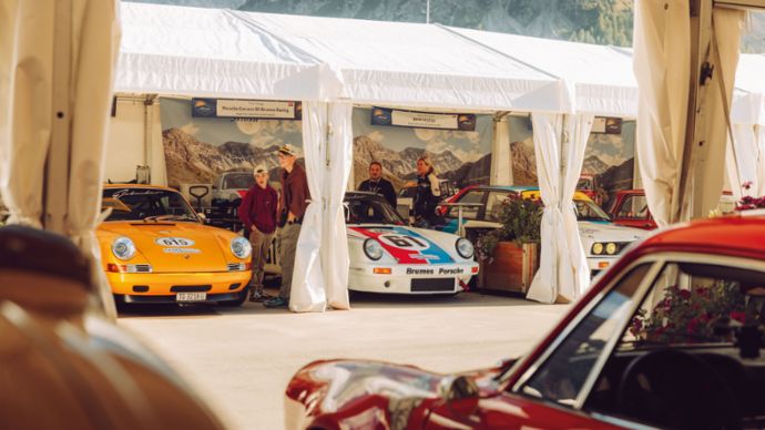Ein Grund mehr für Porsche, sich als Hauptsponsor zu engagieren und gemeinsam mit einer leidenschaftlichen Community den Motorsport zu feiern. Am Stand von Porsche und Porsche Design, die erstmals als offizielle Zeitnehmer der Arosa ClassicCar auftreten, herrscht denn auch ein reges Kommen und Gehen. Nicht wenige scharen sich um ein neues Sondermodell, das die Vergangenheit mit der Zukunft verbindet: den Porsche 911 Spirit 70.