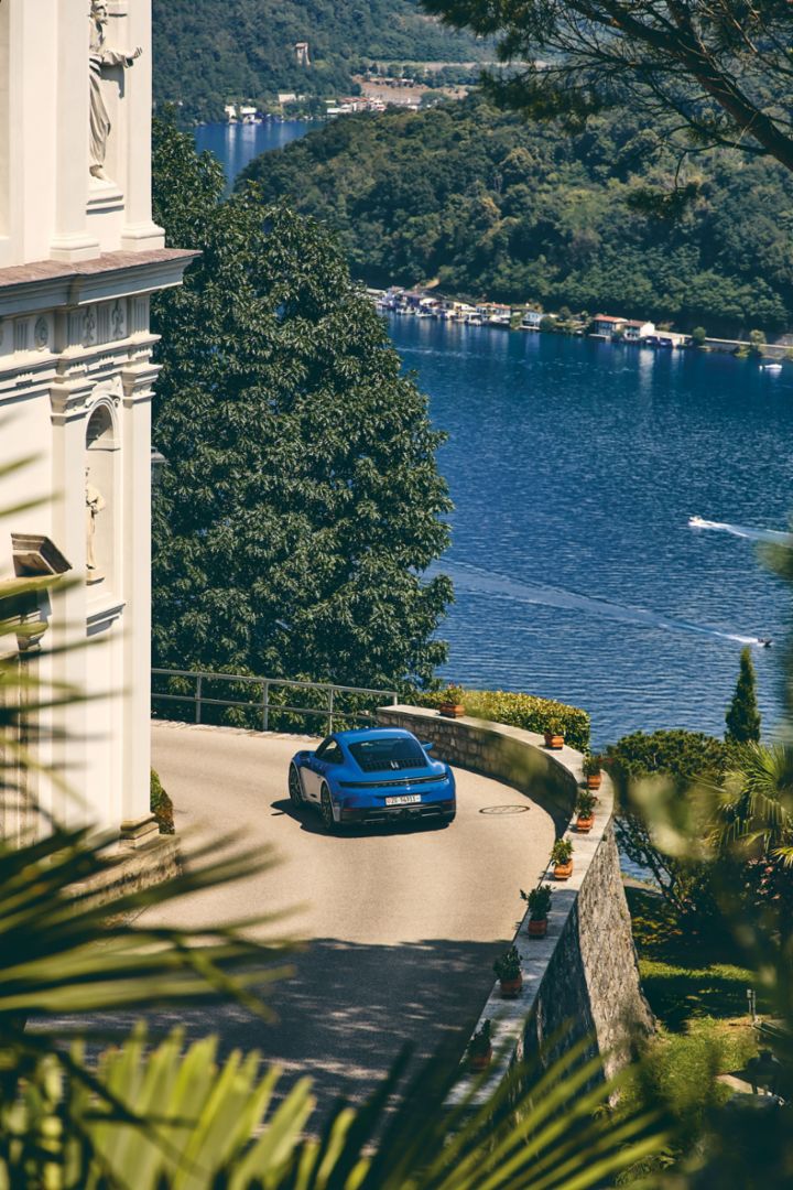 Mit dem Porsche 911 Carrera GTS in Luganoblau auf Spurensuche nach Farbe, Energie und Lebensfreude – natürlich in Lugano.