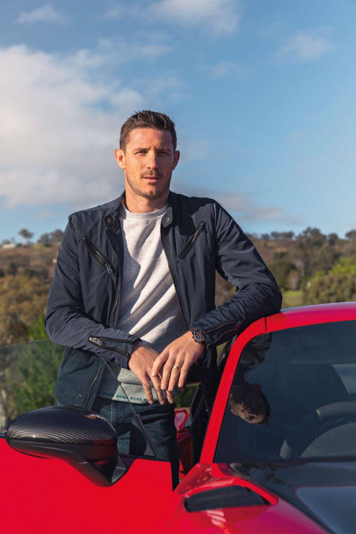 Kévin Estre racing in Australia.Search YouTube for the Porsche documentary ENDURANCE to see his overtaking skills in action. You will hold your breath watching him dice with competitors at the 2019 24 Hours of Le Mans. And his “pass on the grass” during that year’s Nürburgring 24-hour race leaves his teammates visibly stunned, and circuit commentator John Hindhaugh searching for words (head straight to 1:07:40 to see it). Kévin’s daring moves have been viewed online millions of times. As well as entertaining racing fans, they have earned him some of motorsport’s biggest trophies, including his favourite. “That was the 24 Hours of Le Mans win in GT in 2018,” he says, smiling. “It was the 70th anniversary of Porsche. We raced in a special livery and we won against intense competition.”