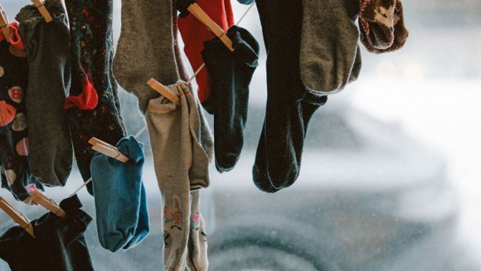 actualmente hay 87 pares de calcetines colgados en el escaparate de la autoescuela, en recuerdo de las 87 víctimas mortales de accidentes de tráfico del año pasado.