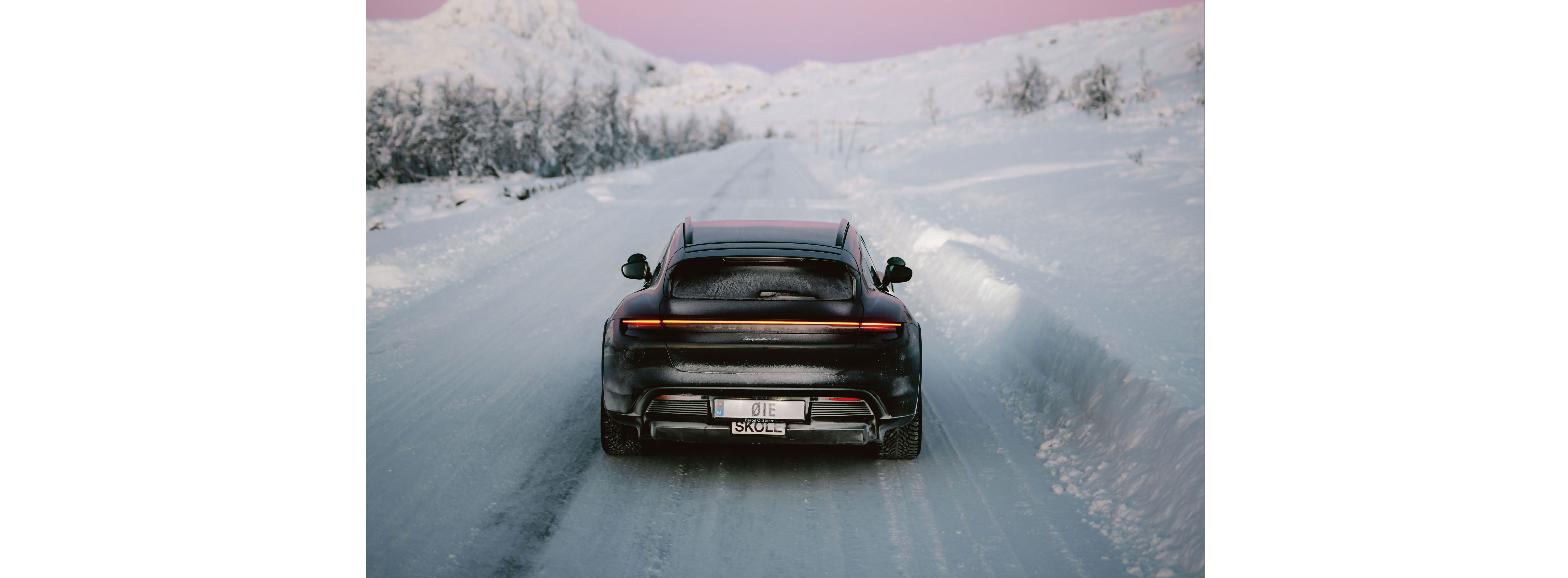 «Me gusta tanto el diseño del Taycan que no quería empañarlo con ninguna inscripción», explica Petersen. En su lugar, adquirió matrículas especiales. Ahora, la palabra «Øie» figura en las placas blancas de la parte delantera y trasera. Es su segundo nombre, que equivale a la palabra noruega para «ojo», y al mismo tiempo da nombre a su autoescuela. Estas matrículas especiales cuestan alrededor de mil euros en Noruega y tienen una validez de diez años.