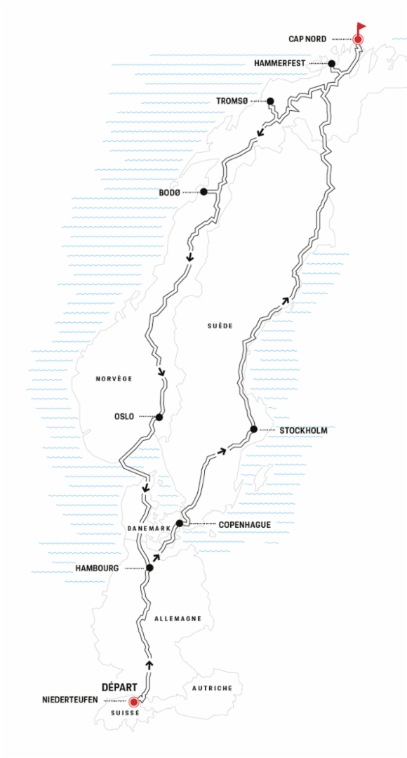 La 911 Dakar munie de l'incontournable autocollant du Cap Nord, le duo a finalement entamé le chemin du retour en Suisse en choisissant de traverser la Norvège.