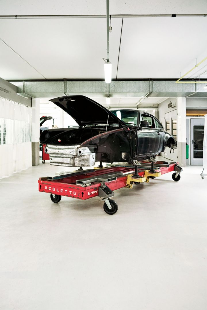 Porsche AG dispose d’un catalogue de 80 000 pièces d’origine et en réédite 300 par an.Une restauration totale, c’est un projet d’équipe avec une logique d’exécution et un planning à respecter. Wilfried en est le chef d’orchestre et il connaît parfaitement la musique. Si la plupart des interventions sont réalisées directement sur place, certaines opérations bien spécifiques sont confiées à des partenaires de confiance. Là encore, l’humain est essentiel : « On travaille par exemple avec quatre selliers en fonction de ce dont on a besoin – assise, capote… Pour la 911 type 964 RS, on a, pour la première fois, fait appel à un spécialiste de la cryogénie afin de rénover la visserie d’origine », détaille-t-il. Car, dans le cahier des charges que s’était fixé le Centre Porsche Vélizy, le respect de la configuration d’origine faisait partie des priorités. Plutôt que de remplacer les pièces, il a été décidé de les nettoyer une par une par cryogénie, c’est-à-dire via la projection d’un mélange d’air comprimé et de glace carbonique ! Pour des pièces plus courantes, la maison mère dispose d’un catalogue de 80 000 références et en réédite environ 300 chaque année afin de répondre aux besoins des restaurations.