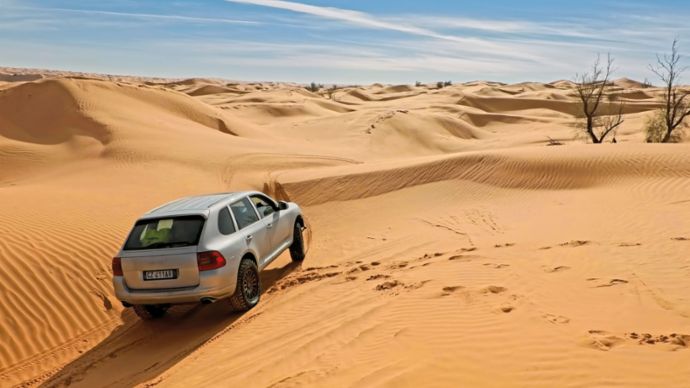 Avventura tra le dune Due fratelli e un sogno: il Sahara, con i suoi paesaggi lunari fatti di sabbia e roccia, il silenzio assoluto, la luce accecante del giorno, il buio stellato della notte. E come compagna, una Cayenne S prima generazione.