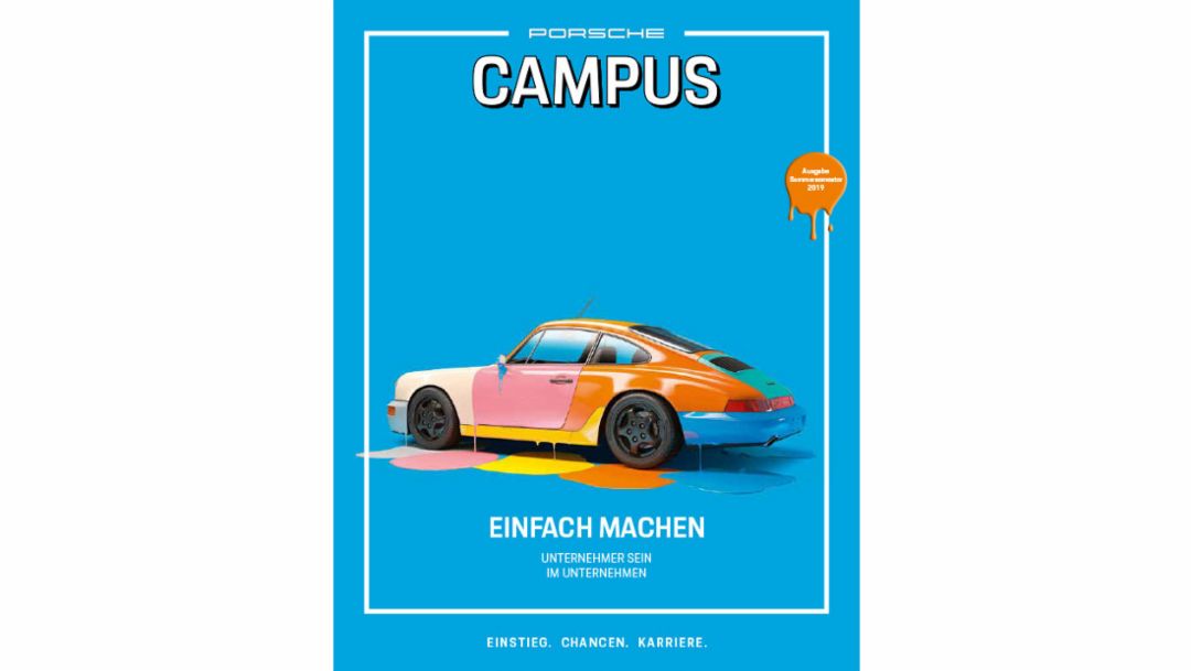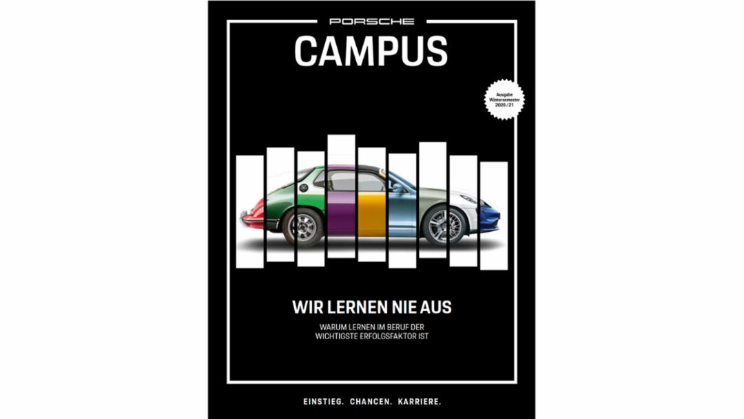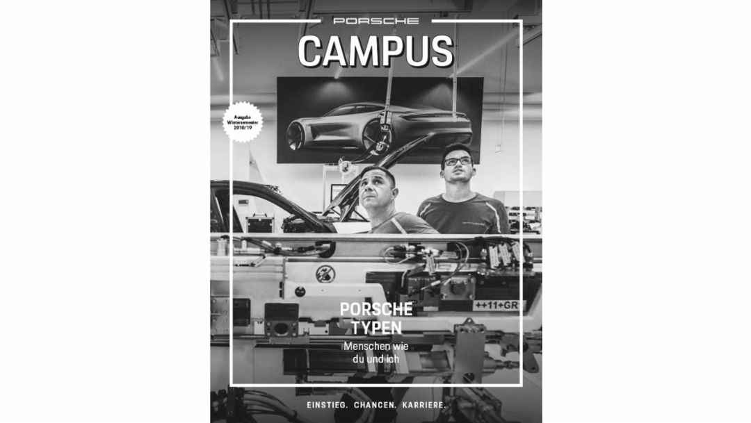 Der Einstieg in die Porsche-Arbeitswelt erfolgt am besten über „Campus“. Informativ, bunt, ein bisschen schrill und extrem attraktiv – das Magazin für potenziellen Porsche-Nachwuchs blickt nicht nur zweimal im Jahr hinter die Kulissen der Porsche-Arbeitswelt, sondern zeigt, was den Sportwagenbauer als Arbeitgeber ausmacht. In journalistisch aufbereiteten Reportagen, Porträts, Interviews und Hintergrundgeschichten stellt „Campus“ die Menschen vor, die an der Zukunft von Porsche mitarbeiten und gibt dadurch der Faszination für das Unternehmen und dessen Produkte viele Gesichter. Artikel, die zeigen, welche vielfältigen Einstiegs- und Karrieremöglichkeiten der Sportwagenbauer bietet. Zielgruppe des Magazins sind Praktikanten, Studenten, Absolventen, Trainees, Berufseinsteiger und Young Professionals. Vertrieben wird es auf Jobmessen, Veranstaltungen und natürlich Online.
