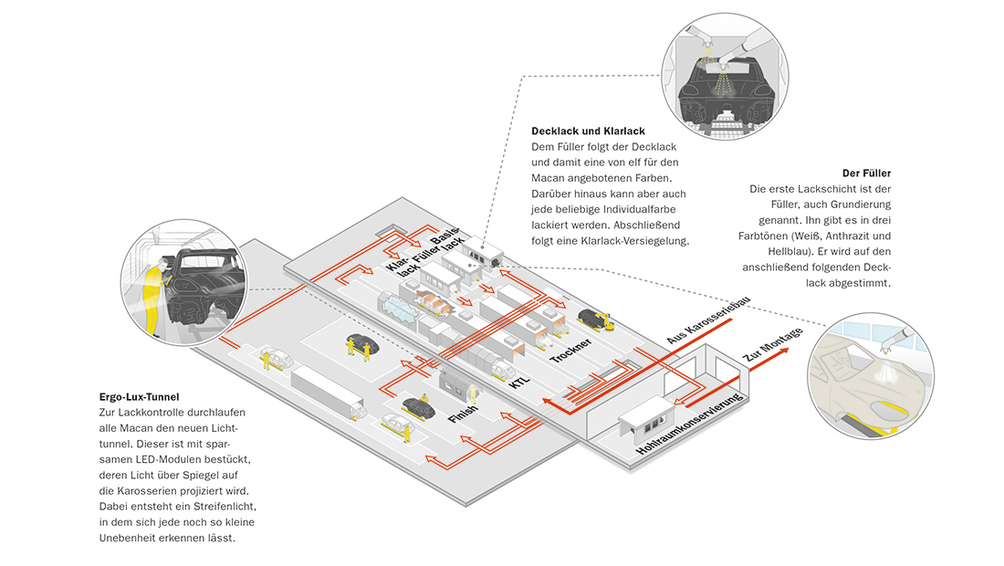 Im nächsten Teil begleitet der Porsche Newsroom den Macan in die Lackiererei.