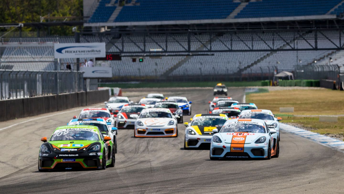 Sowohl im GT3 Cup als auch in der GT4 Challenge hat die Suche nach neuen Champions begonnen, denn in beiden Klassen verzichten die amtierenden Meister auf die Titelverteidigung. Diese Steilvorlage nutzte Alexander Fach mit seinem 911 GT3 Cup auf dem Grand Prix-Kurs von Hockenheim am bes-ten: Der 18-Jährige – einer von zwei neu nominierten Förderpiloten des Verbands Schweizer Porsche Clubs (VSPC) und der Porsche Schweiz AG – dominierte beide Sprintrennen. Ähnliches Bild im Cayman GT4-Markenpokal: Hier kreuzte der Römer Francesco Fenici am Ende beider 15-Runden-Rennen die Ziellinie als Sieger. Mit der gleichmässigsten Fahrweise entschied Robert Schwaller am Steuer seines 911 GT3 die Porsche Drivers Competition Suisse für sich.