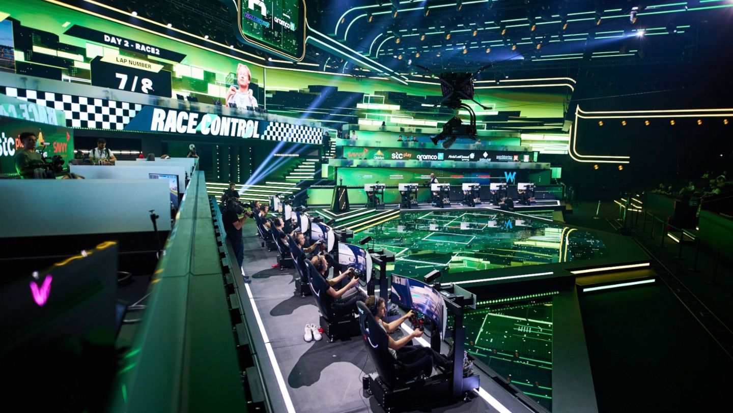 Twelve professional teams with a total of 48 drivers took part in the ESL R1 Mid-Season Event in the Saudi Arabian capital Riyadh, including delegations from Mercedes-AMG, BMW M and the Formula 1 racing team Williams, in addition to prominent sim racing organisations such as R8G Esports and Team Redline. Only six teams managed to make it to the final on Sunday, following the group stage on Saturday – including Porsche Coanda Esports. The works team, which is based in Gronau near the Dutch border, was represented at the live event on the Arabian Peninsula by US American Mitchell deJong, Mack Bakkum (Netherlands) and the two Australians, Joshua Rogers and Dayne Warren. The quartet had already claimed first place in the team classification on Saturday with three first places and two further podium spots.