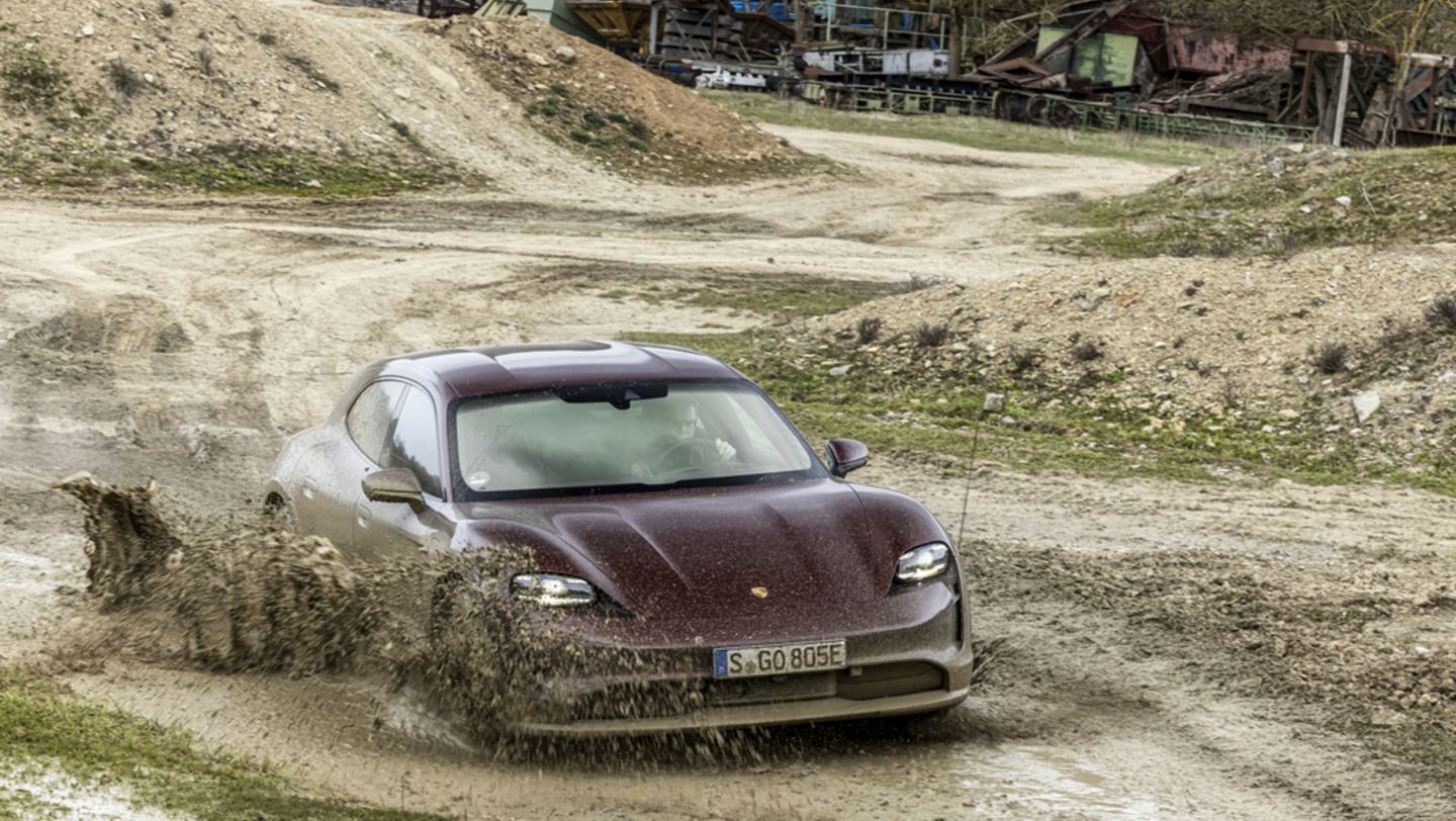 # The published kilometre (km) range figures are determined by Porsche AG testing in accordance with ADR 81/02 on test vehicles assuming the battery is fully charged. Actual figures will vary as they are dependent on many factors, including without limitation: individual driving style, road and traffic conditions, environmental conditions, a vehicle’s or battery’s condition, load and use. Usage of specific features and accessories (eg: vehicle equipment such as air-conditioning, or wheels or tyres used etc.) can change relevant vehicle parameters such as weight, rolling resistance and aerodynamics and can also affect the range and performance values of a vehicle. Generally, kilometre ranges will vary from the published figures in real world Australian driving and charging conditions. Published figures should only be used for the purpose of comparison between vehicles. Please contact an Official Porsche Centre to obtain specific information about vehicles and features.