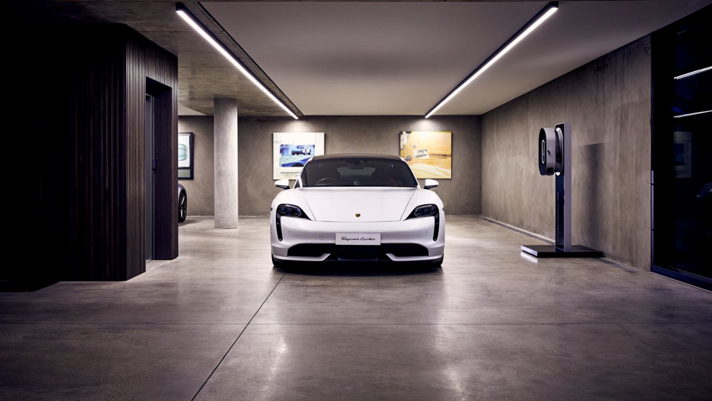 The Porsche Taycan has a newly designed high-tech lightweight body which accommodates the electric powertrain and onboard battery.