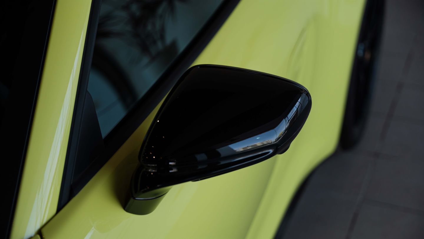 The visual story is completed by tinted HD-Matrix LED main headlights and exclusive design taillights, both unmistakable signatures of the Manufaktur touch. As the doors open, LED courtesy lights projecting the ‘PORSCHE’ logo announce your arrival with quiet sophistication.