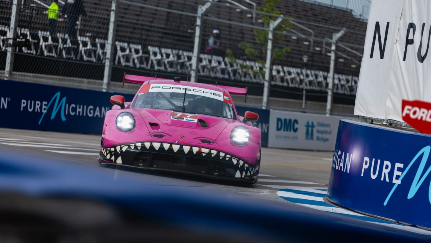 Detroit, Michigan. The No. 7 Porsche 963 of Nick Tandy and Felipe Nasr led most of the 100-minute race on the 1.645-mile street course, dropping back to fourth with 14 minutes remaining, opening the door for the sister car’s podium.