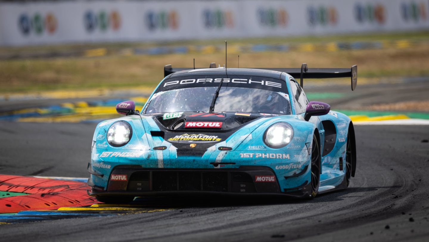Le Mans, France. The Manthey 1st Phorm Porsche, co-driven by Atlanta resident Ryan Hardwick, Richard Lietz, and Riccardo Pero, were in front at the end of every hour for the final nine hours of the race and finished 33.259 seconds ahead of their nearest competitor. Defending Porsche Carrera Cup North America champion Loek Hartog was part of the No. 90 Manthey Porsche 911 GT3 R who finished sixth in class.