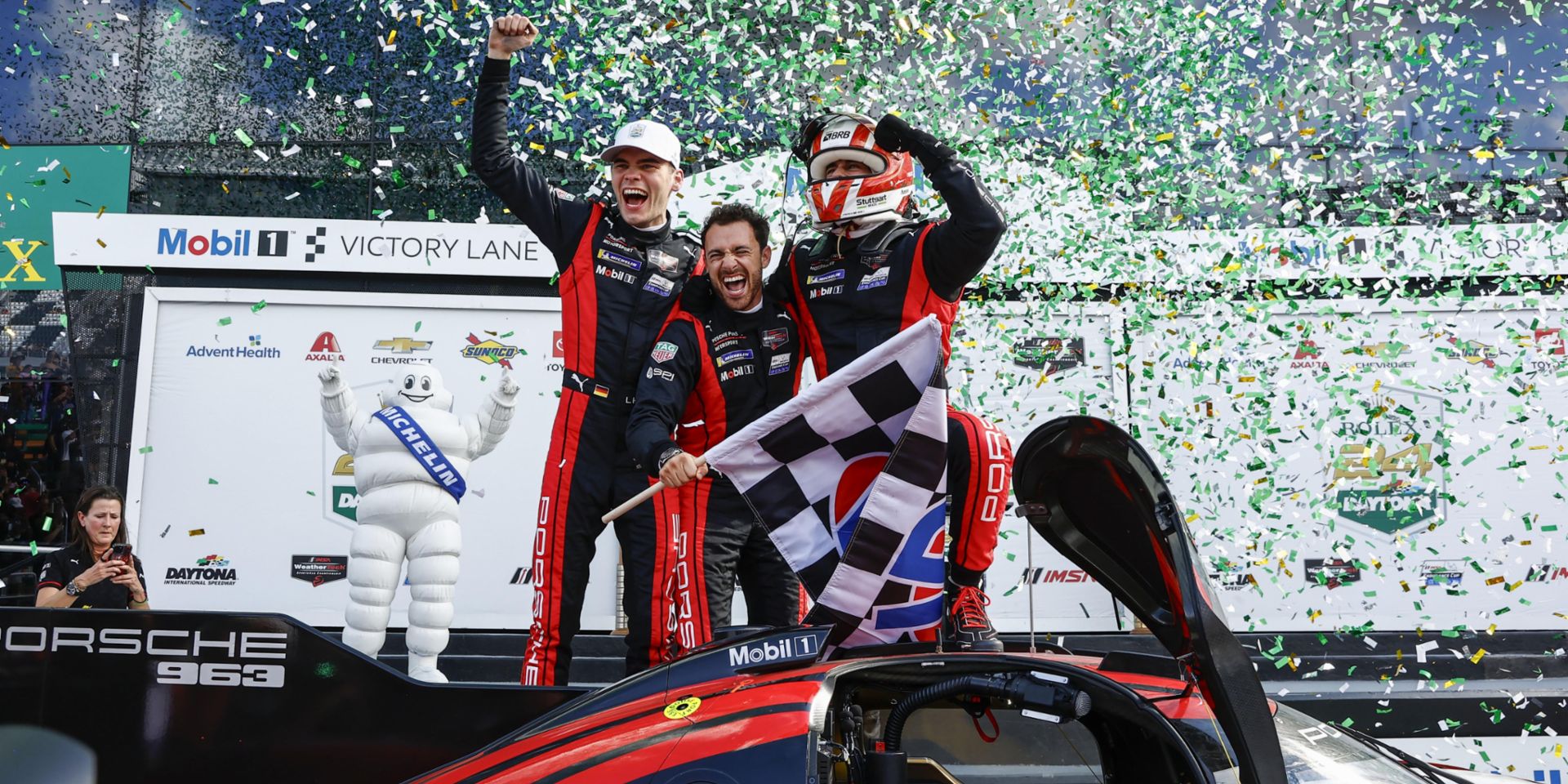 Porsche celebrates its third straight outright victory at the 24 Hours of Daytona. Thanks to this triumph, the sports car manufacturer cements its record with 21 wins.