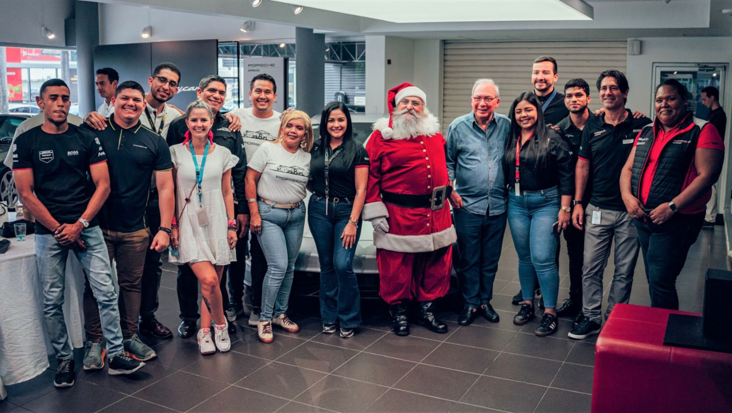 Los más de 50 participantes, socios del Porsche Club de Panamá, que se reunieron por la mañana hicieron un emocionante recorrido por la ciudad en sus autos. Al regresar al Porsche Center disfrutaron del almuerzo y una tarde cargada regalos, juegos, premios y la sorpresiva visita de Santa Claus.