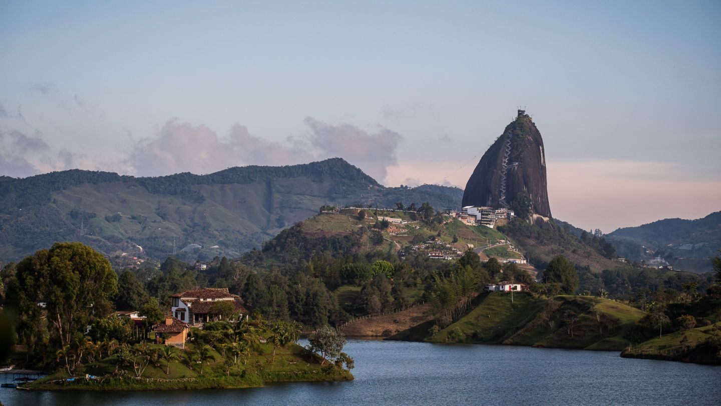 El gran atractivo del recorrido de 50 kilómetros no podía ser otro que la famosa piedra del Peñol, ese monolito granítico de 220 metros de altura desde donde se tiene la mejor vista de la represa de Guatapé.