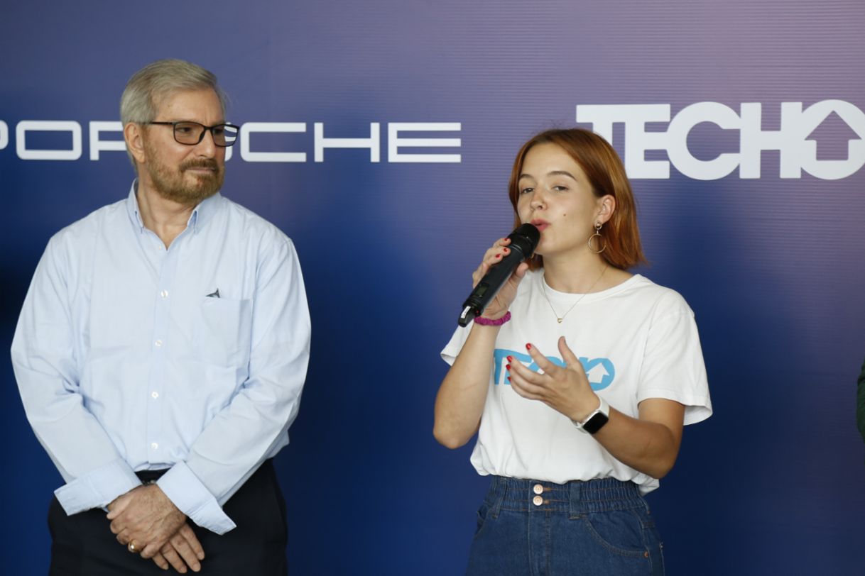 Miguel Carrizosa, presidente de Diesa, Giovanni Fiorio, gerente de posventa de Diesa, Jorge Puschkarevich, gerente de Porsche Paraguay, Claudia Neuman, directora de Techo Paraguay, y Diosnel Bernal, instructor del programa, entregaron los reconocimientos en el marco de un acto llevado a cabo en las instalaciones del Porsche Service.