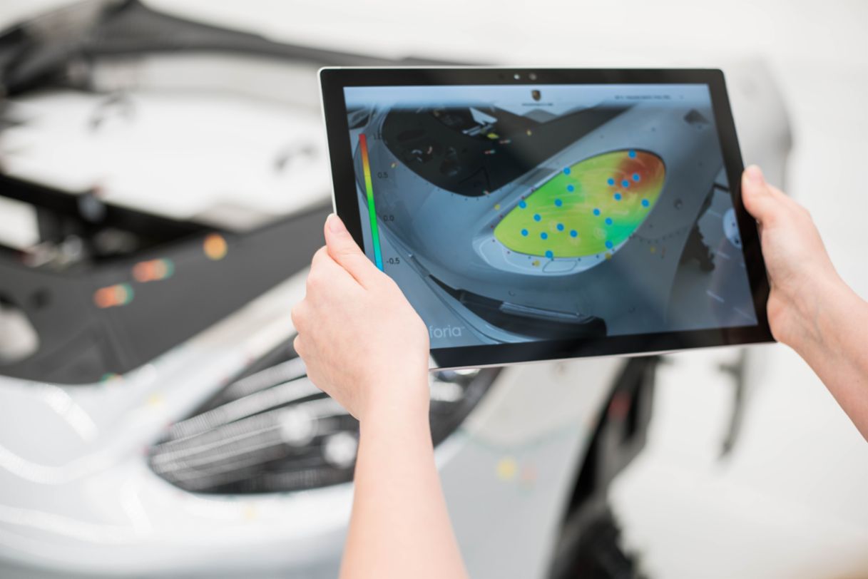 Il test di valutazione del ‘look & feel’ basato sull’AR è un esempio tipico di come le innovazioni generate all’interno dell’Inno-Space vengono sviluppate e poi implementate. GTV ha collaborato con l’organizzazione di ricerca Fraunhofer per realizzare una app che prende i difetti rilevati durante il test ‘look & feel’ e li sovrappone a un’immagine del veicolo in ogni singola fase del processo di produzione. Una volta inseriti nella app tutti i dati CAD del veicolo e aver posizionato la telecamera di un tablet sul componente, l’immagine CAD viene sovrapposta all’immagine reale ed eventuali difetti o scostamenti risultano immediatamente visibili. Il database contiene inoltre dettagli di altri parametri, come ad esempio i punti di giunzione. Anche in questo caso, un confronto fra l’immagine reale e l’immagine CAD evidenzia all’istante le eventuali aree di giunzione che non soddisfano lo standard prefissato. Un altro vantaggio è rappresentato dal fatto che il processo di test può essere trasmesso in streaming in tempo reale alla sede di qualsiasi partner o stabilimento. Al contempo, i difetti rilevati vengono archiviati nel database centrale dello stabilimento e resi disponibili in tutto il mondo. ‟Ciò significa che potremo beneficiare di numerosi vantaggi che si estendono ben oltre il semplice processo di test”, precisa Andreas Schmidt, Responsabile della Qualità presso lo stabilimento Porsche di Lipsia e incaricato dell’implementazione del progetto di realtà aumentata in collaborazione con gli istituti di ricerca. ‟Il fatto che il tablet sia collegato in rete ci permette di svolgere attività come, ad esempio, le ispezioni di qualità presso i nostri fornitori mediante video-conferenza, con tempi di preavviso brevi.”