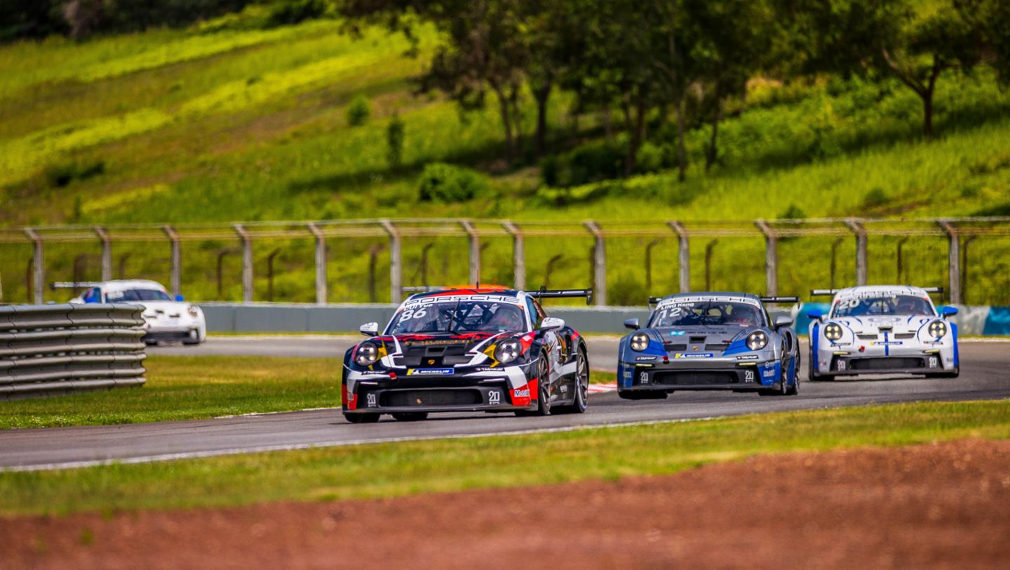 亚洲保时捷卡雷拉杯 2021 赛季第三回合比赛在珠海的熊熊烈日下激情开战,高达 41 度的赛道温度给车手体能和车队的轮胎策略带来极大挑战。追星车队的小将余快以 1:36.593 的最快圈杆位发车,在他身后是保时捷控股车队车手崔岳和捷成车队车手陆文龙(Daniel Lu Wenlong)。